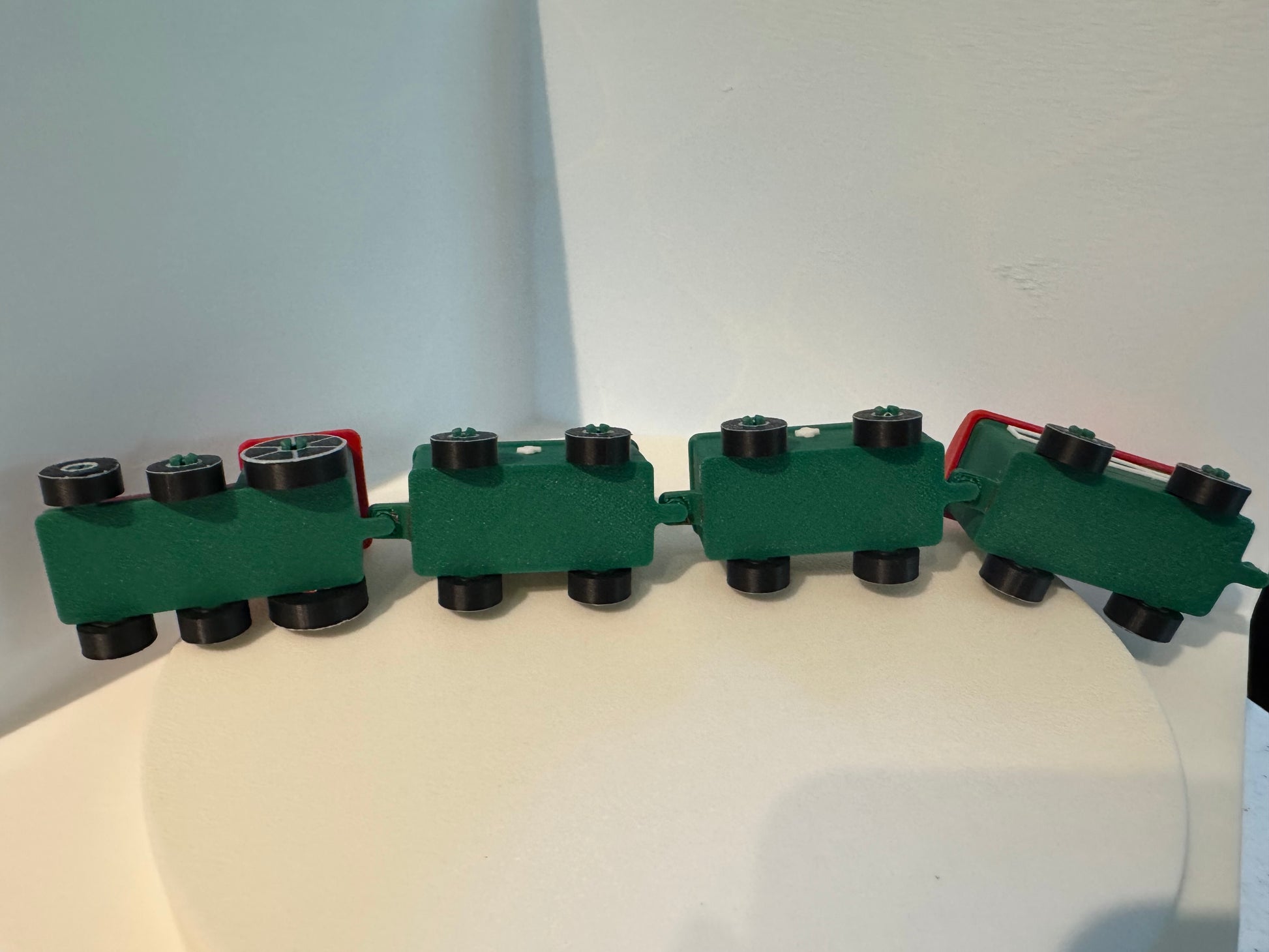 With all the cars pulled straight, the total length is 11 inches, and the train is 2 inches tall